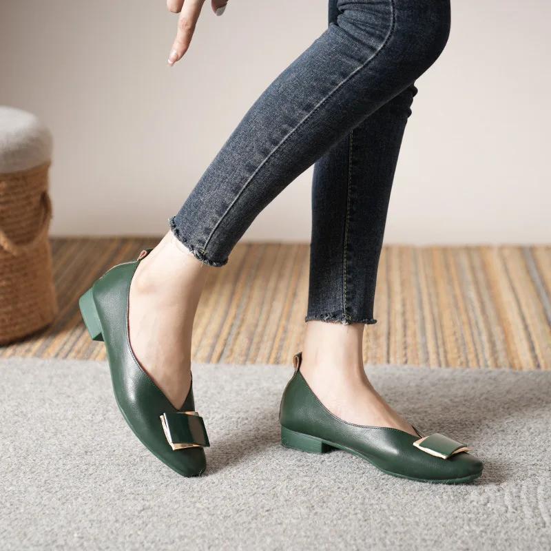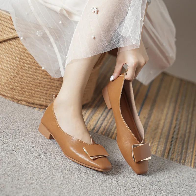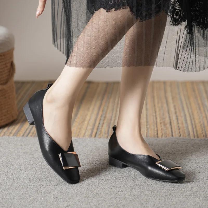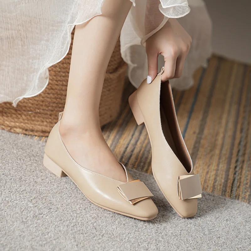 Модные весенне-осенние новые женские туфли-лодочки класса люкс с квадратным носком и неглубоким вырезом на низком каблуке, повседневные туфли на мягкой подошве, удобная рабочая обувь