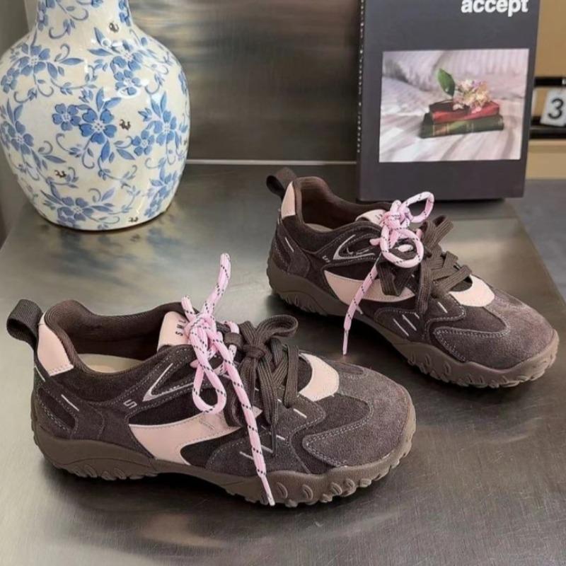 Fashion Women's Flat Sports Shoes Autumn New Round Head Splicing Front Lacing Soft Sole Anti-slip Wear-resistant Low-top Single Shoes