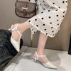 Модные женские босоножки на высоком каблуке с острым задником и воздушным верхом, французского нюдового цвета, высокого качества, женская обувь, на низком каблуке, женские сандалии, обувь