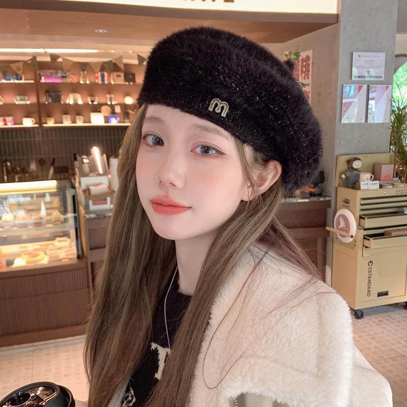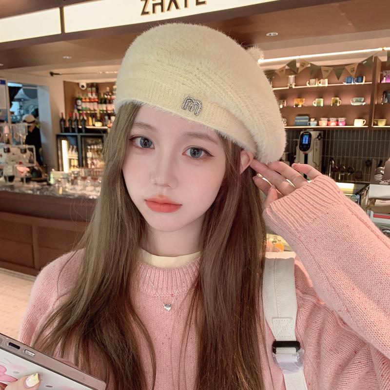 Корейская версия осенне-зимней шляпы для женщин, японский берет, однотонная вязаная шерстяная шапка, зимний берет, теплая шляпа художника, толстая шапка