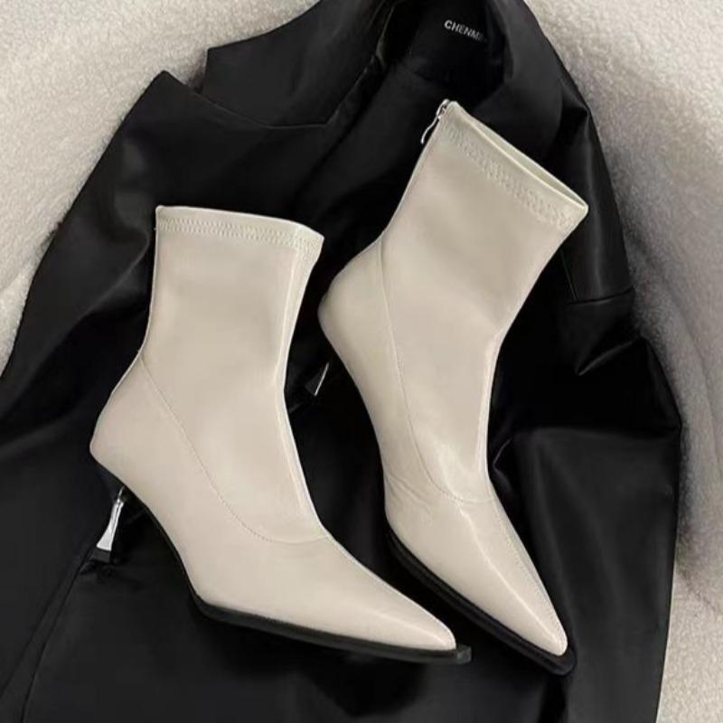 Мода Осень Новые Тонкий Каблук Одинарные Ботинки Женская Мода Острый Носок Молния Сзади Темперамент Высокий Каблук Короткие Ботинки