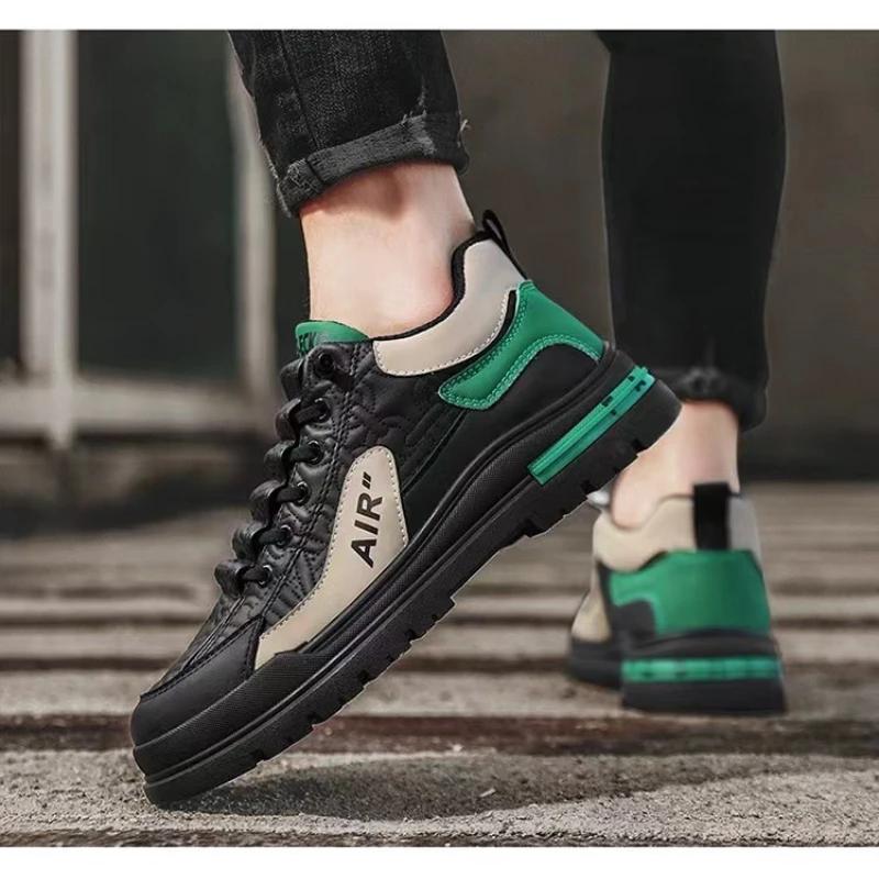 Модная мужская обувь на толстой подошве, нескользящая, 2025 новинка, кожаная повседневная обувь, корейская дышащая рабочая обувь, трендовые кроссовки, мужская обувь на платформе