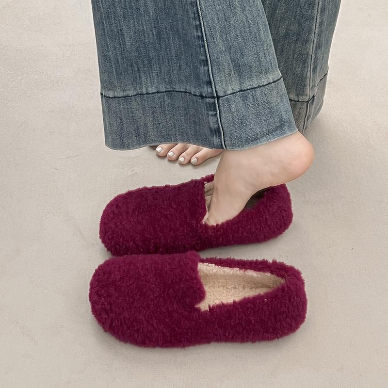 Модная обувь большого размера на плоской подошве, новая обувь с круглым носком и глубоким вырезом из замши, теплая хлопковая обувь для осени и зимы