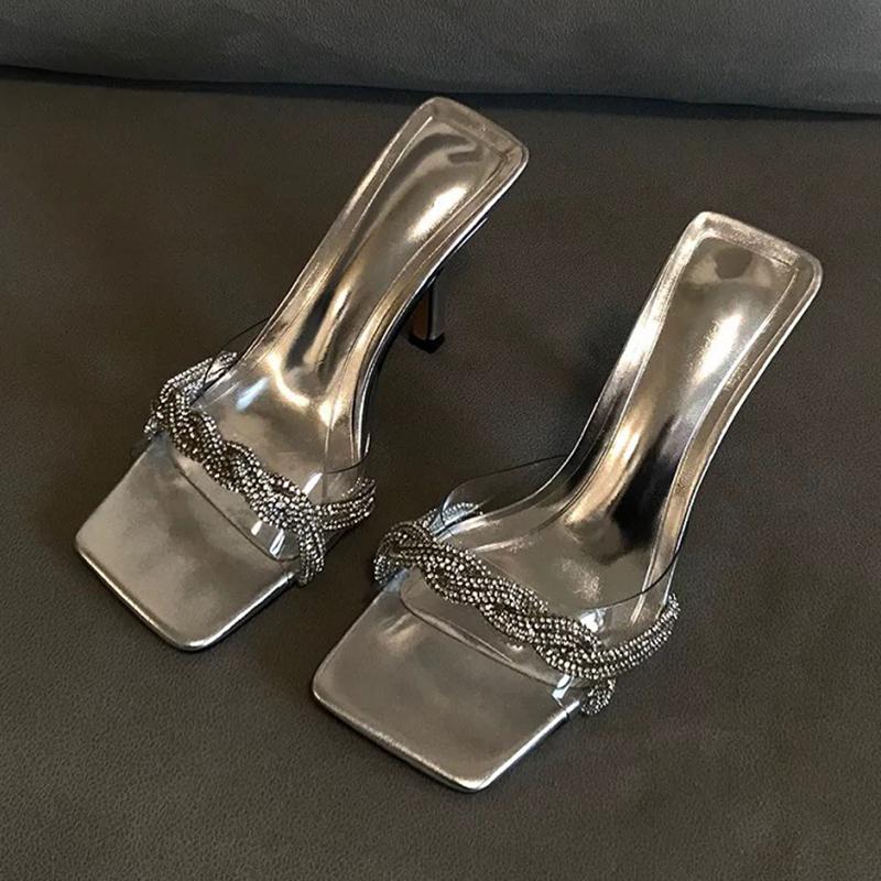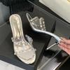 Модные хрустальные туфли на высоком каблуке, женские шлепанцы, дизайнерские сандалии на каблуке класса люкс, женская обувь, летние туфли-лодочки 2025, модные шлепанцы, слайды, Mujer
