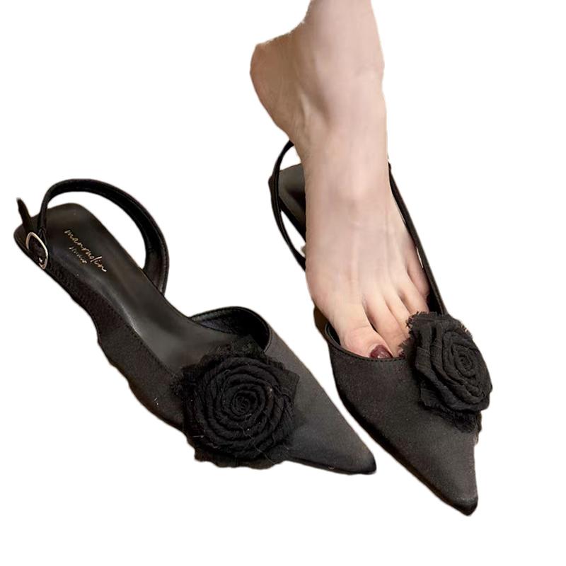 Модные женские босоножки на каблуке с цветочным декором, с острым носком, на невысоком каблуке, элегантные туфли-лодочки с пряжкой, лето 2025, сандалии-слингбэки для женщин