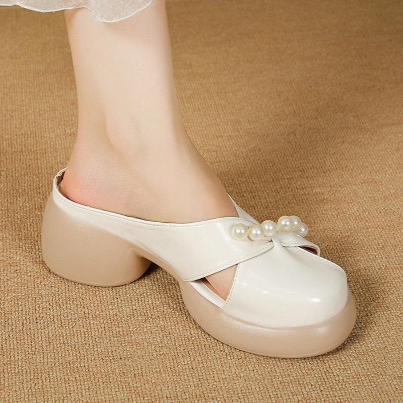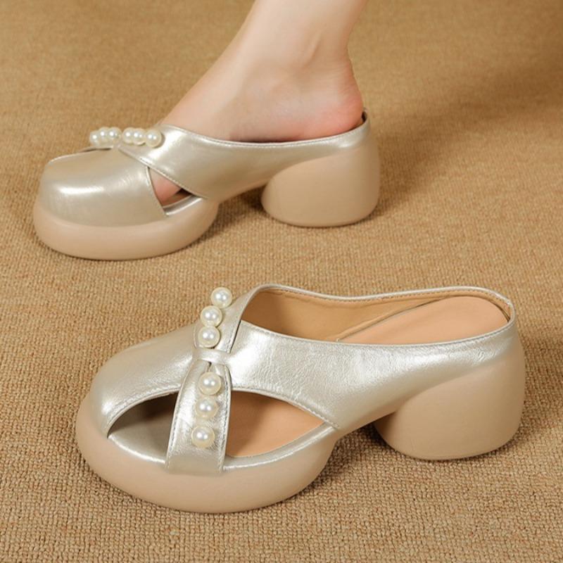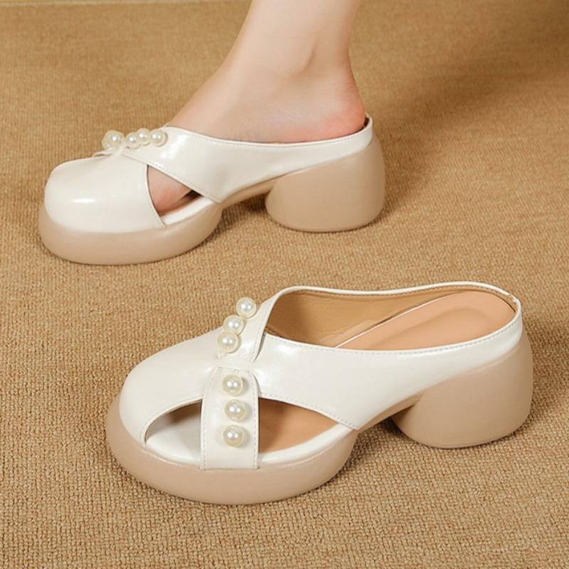 Модные женские шлепанцы на среднем каблуке, дизайнерские элегантные туфли с бусинами для женщины, модные босоножки-слингбэки, летние новинки 2025, туфли-лодочки Mujer Sandalias