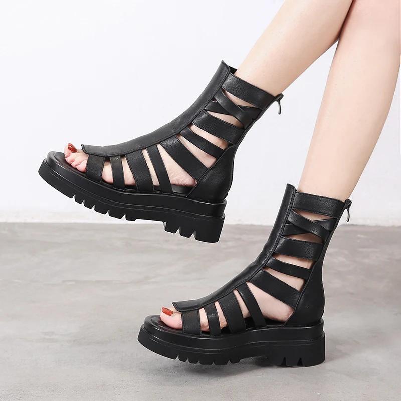 Мода 2025 Лето Новые Женские Босоножки с Открытым Носком в Римском Стиле Бестселлер Застежка-Молния Сзади Модные Однотонные Босоножки на Платформе с Вырезами Повседневные Высокие Сапоги Zapatos