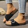Модные женские летние пробковые шлепанцы 2025 Новые уличные пляжные шлепанцы Модные кожаные ортопедические сандалии с регулируемой пряжкой