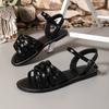 Модные французские сандалии с плоским носком женские 2025 лето новые коричневые ретро черные удобные римские туфли обувь для женщин обувь на платформе