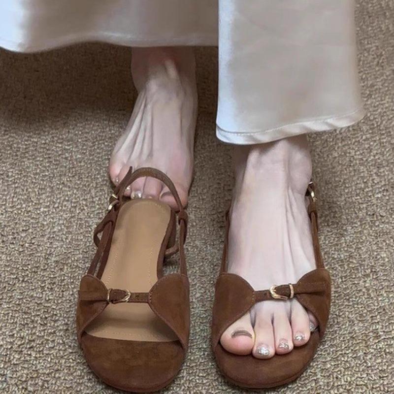 Fashion French one-legged sandals for women to wear on top, one-button, fashionable and versatile, thick-heeled open-toe Roman shoes