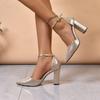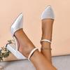 Модная женская обувь 2025 нового стиля, на одно плечо с пряжкой, острый носок, полый толстый каблук, модные и удобные туфли на высоком каблуке