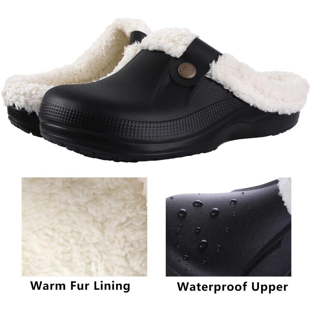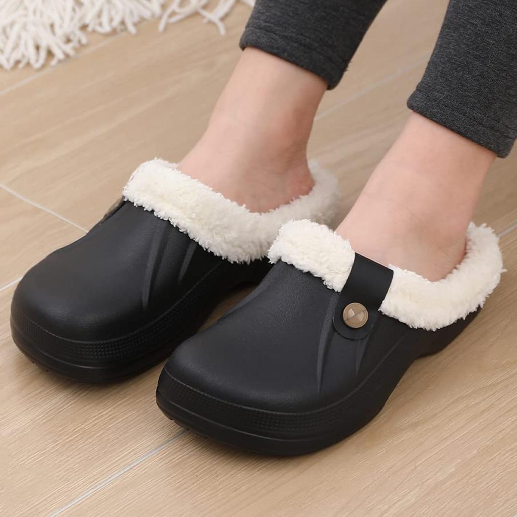 Модные теплые сабо с меховой подкладкой для женщин и мужчин, зимние теплые тапочки, садовая обувь, водонепроницаемые плюшевые тапочки для пар, домашняя обувь Eva Fuzzy