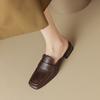 Мода 2025 Лето Женские Мюли Натуральная Кожа Женская Обувь Квадратный Носок Низкий Каблук Обувь Закрытый Носок Слипоны Женские Сандалии Ретро Шлепанцы