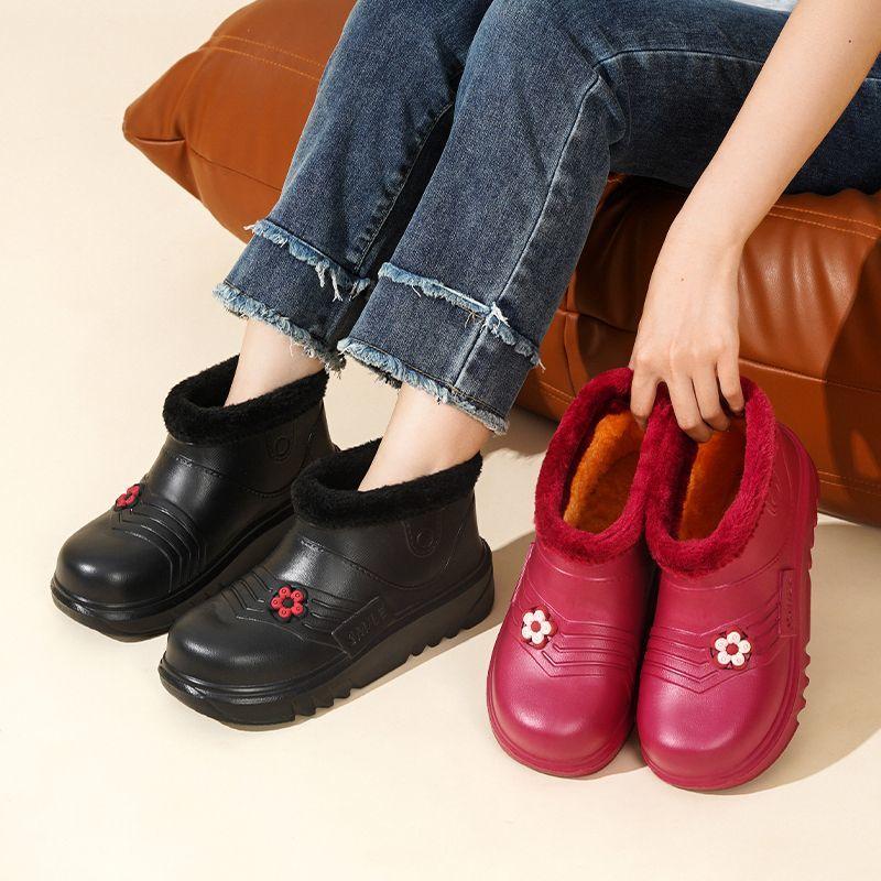 Женские зимние ботинки с плюшевой подкладкой, Теплые резиновые сапоги, Водонепроницаемые резиновые сапоги, Рабочая обувь для кухни