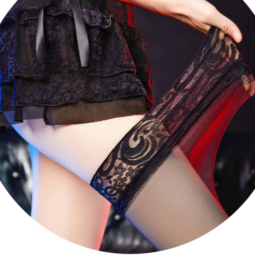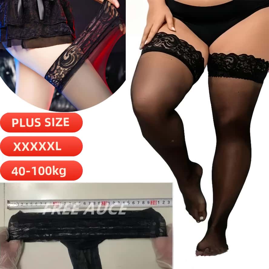Женские чулки до бедра с кружевным цветочным узором, прозрачные, ультратонкие, косплей, Лолита, большие размеры, готические девушки, JK кружевные чулки выше колена для пышных женщин 3XXXL