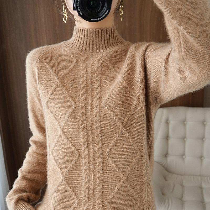 Женский теплый утолщенный свитер с полувысоким воротником, осенне-зимний пуловер с косами, свободный и универсальный, вязаный свитер для верхней одежды — купить товар онлайн с бесплатной доставкой по всему миру!