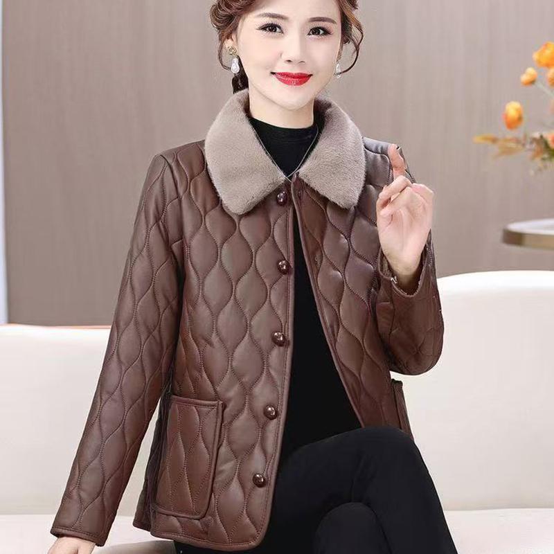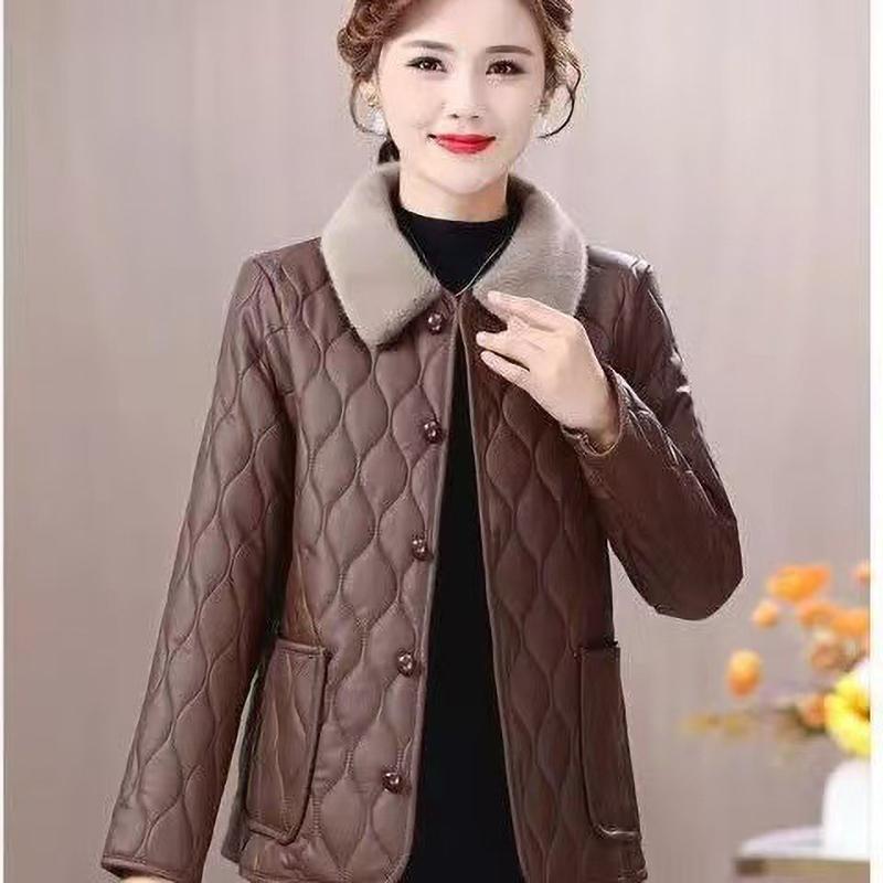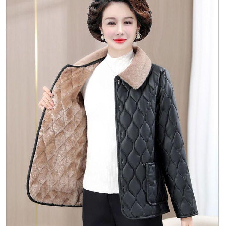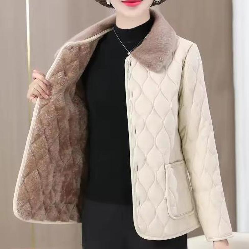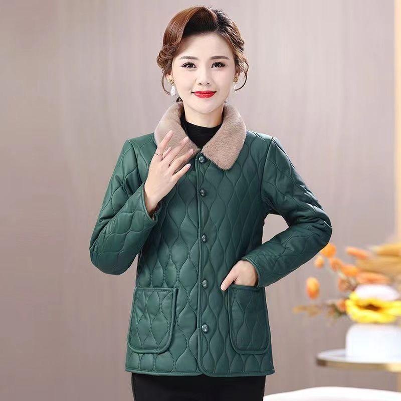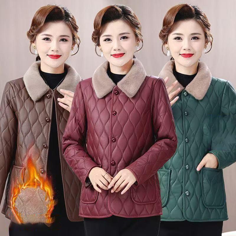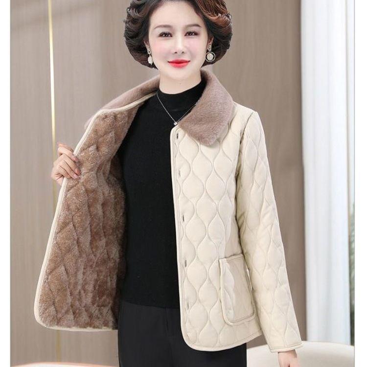 Зимняя куртка Зимняя мода для мам Свободное Толстое Пальто с меховым воротником Для женщин среднего возраста Бархатное Теплое Пальто