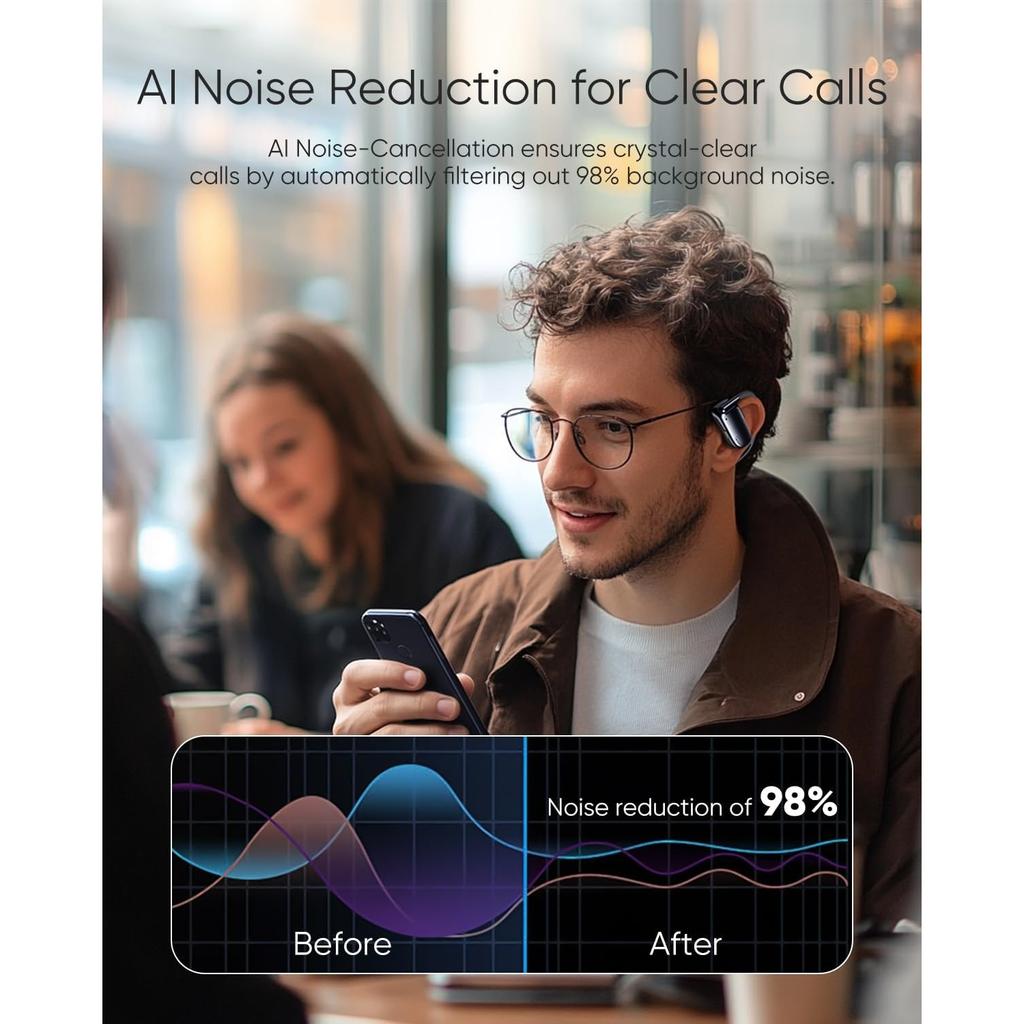 Наушники с открытым ухом Bluetooth 5.4 Беспроводные наушники с воздушной проводимостью Экстра-бас 48 часов воспроизведения Наушники 3 режима эквалайзера, ENC микрофон, IPX5 Подходят для тренировок, бега