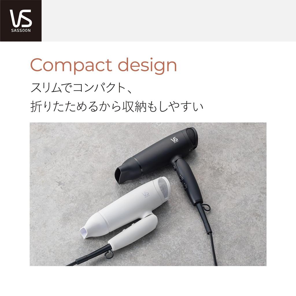 Vidal Sassoon Hair Dryer, White, VSD-1242/WJ, Negative Ion, Foldable, Quick Drying, Hair Styling, Scalp Mode, Cool Mode, Dry