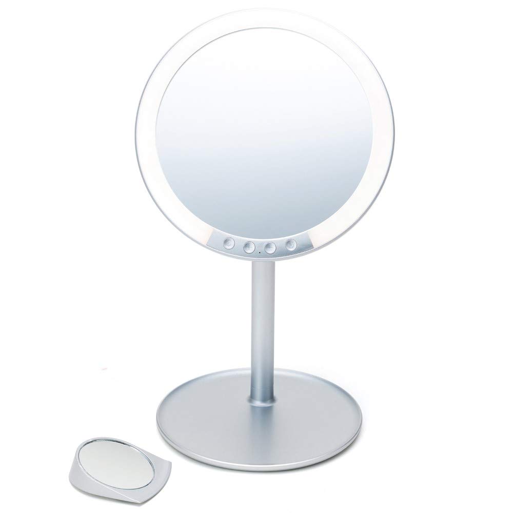 【3-кратное увеличение】 Зеркало с 3-кратным увеличением, идеально подходящее для детальной работы, такой как макияж глаз, хранится на задней стороне зеркала и может быть снято для использования. Зеркало с 3-кратным увеличением позволяет разглядеть даже мельчайшие детали, что делает его идеальным для ухода за кожей, включая проверку на черные точки, несовершенства и морщины.