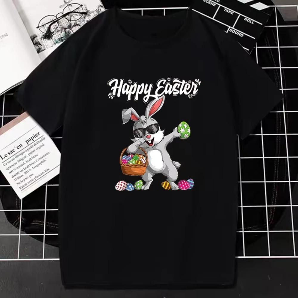 Футболка Счастливой Пасхи Крутой принт с кроликом Топы с коротким рукавом Женская мода Хип-хоп Уличная одежда Уникальная Классическая Графическая Футболка оверсайз