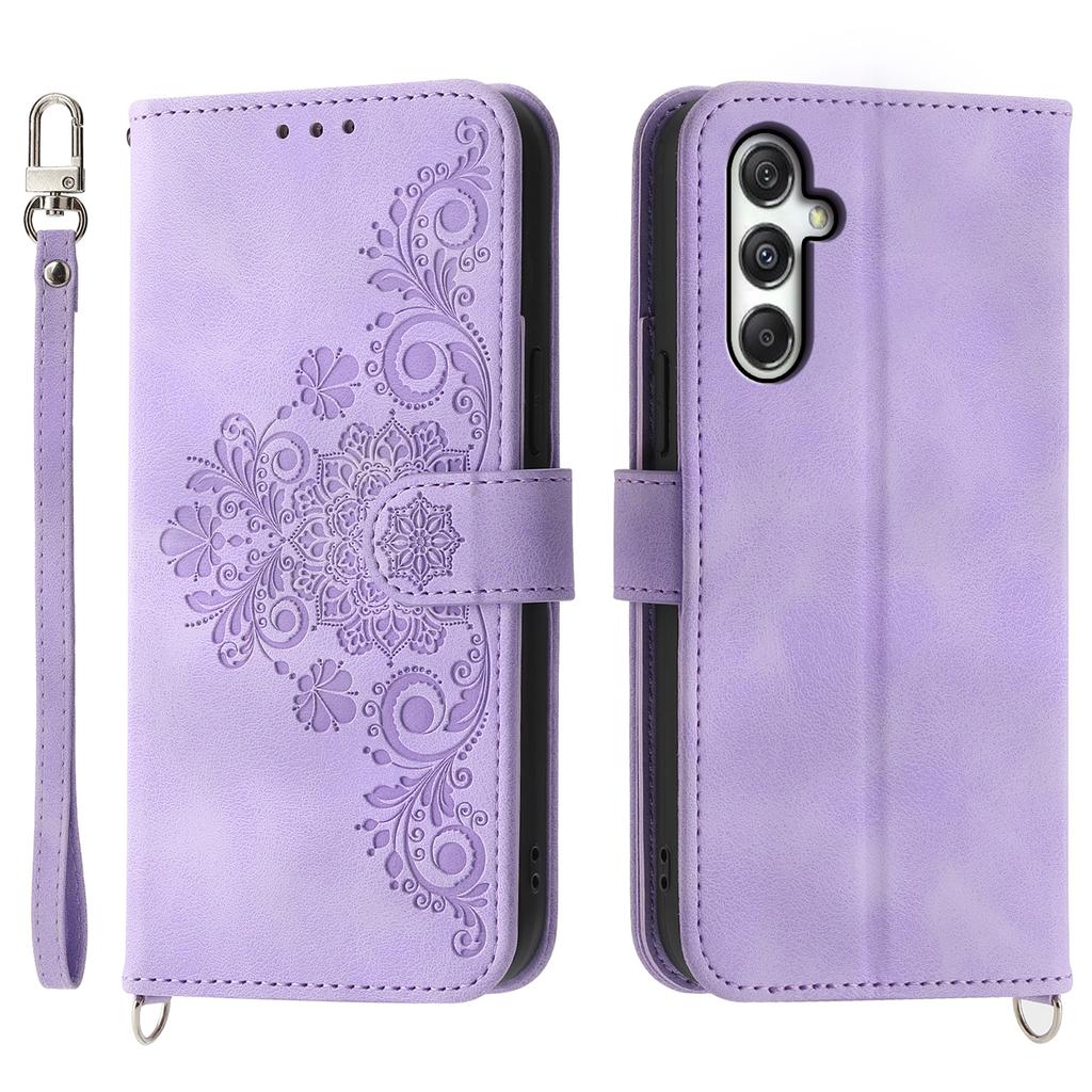 Чехол для Samsung Galaxy M35 5G с цветочным узором, кошелек из ПУ кожи, чехол для телефона со шнурком