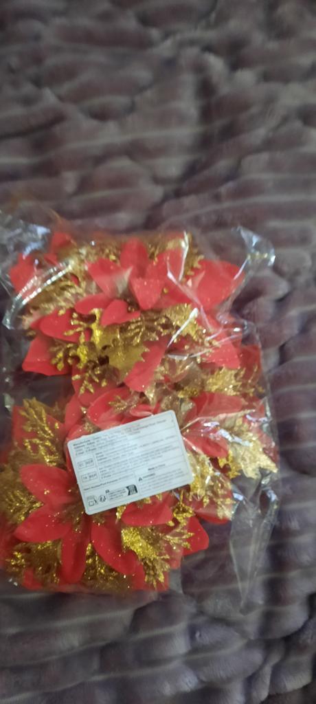 Блески осыпаются. Раскрыла пакет, вынула 1 цветочек и все вокруг в этих блестках и пол, и стол, и одежда. И руки … видимо какие-то они аллергенные ( блески), руки мыла, одежду стирала. В перчатках, наверное, елку украшать…