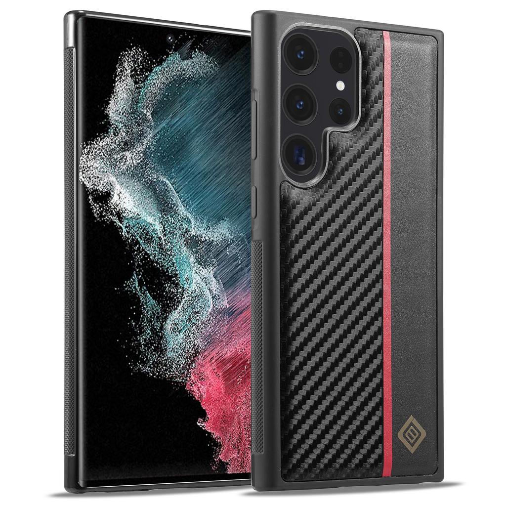 LC.IMEEKE For Samsung Galaxy S22 Ultra 5G Carbon Fiber Texture Phone Case PU Leather+TPU+EVA Phone Cover — купить товар онлайн с бесплатной доставкой по всему миру!