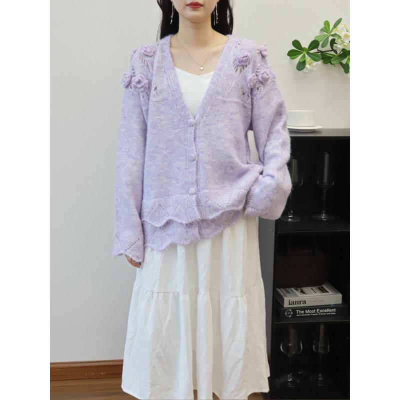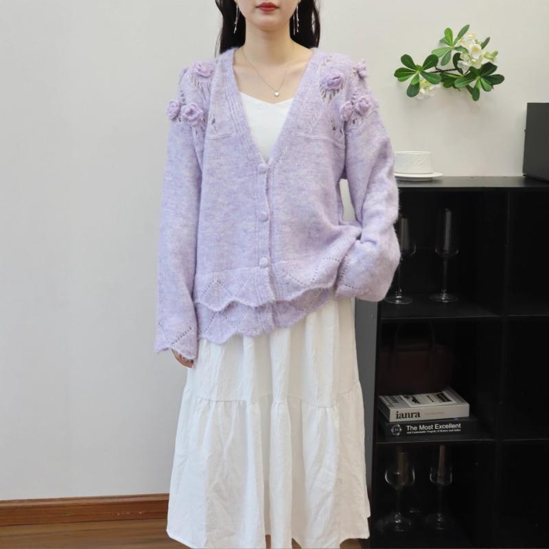 Осень и зима новый кардиган с V-образным вырезом, объемными цветами, вязаный, свободный, мягкий, восковой, нежный, ветровка, свитер, куртка женская