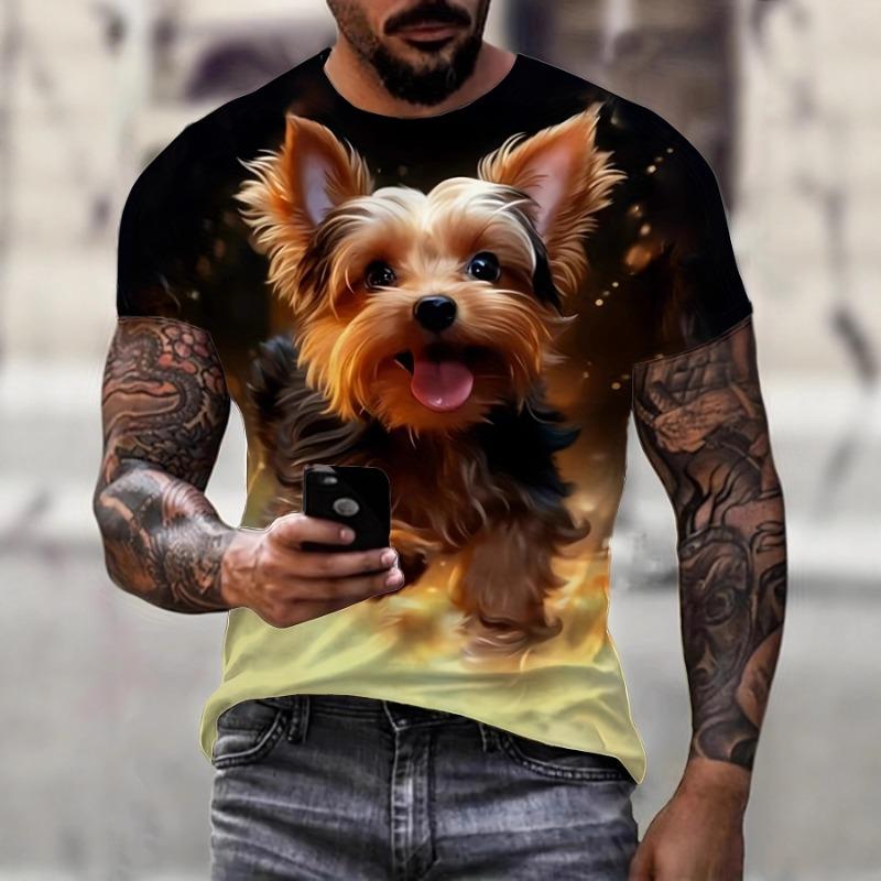 Мужская футболка с 3D цифровым принтом с узором собаки, европейским и американским принтом, с коротким рукавом, летняя, дышащая, с круглым вырезом