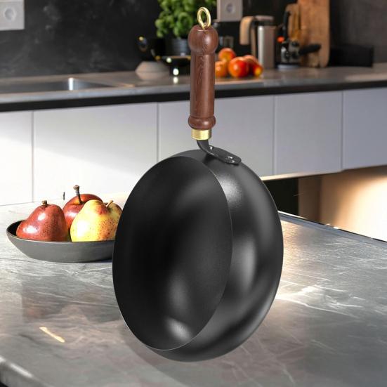 Создано для долговечности: Тщательно изготовленная с оптимизацией теплопроводности, эта китайская кастрюля для жареной пищи отличается исключительной прочностью и равномерным распределением тепла.. Круглая конструкция дна отлично подходит для индукционных плит, гарантируя долговечность благодаря толстому, устойчивому к высоким температурам корпусу.. Воспользуйтесь традиционным мастерством, которое сохраняется на протяжении десятилетий разнообразного кулинарного опыта.