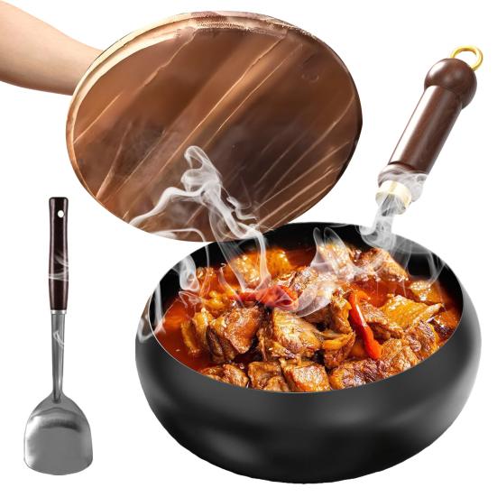 Этот кастрюля, рассчитанная на длительный срок службы, проходит обработку ковочным молотом и оптимизацию теплопроводности для повышения долговечности и прочности.. Круглая конструкция дна обеспечивает равномерный нагрев, что делает ее пригодной для различных способов приготовления пищи, в том числе на индукционных плитах.. Благодаря своей толстой конструкции эта кастрюля способна выдерживать высокие температуры, гарантируя, что она станет вашим постоянным спутником на кухне.