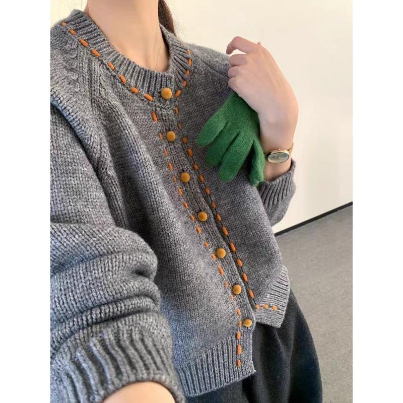 Вязаный кардиган с контрастным веревочным дизайном, весенний новый, с круглым вырезом, свободный, на одной пуговице, куртка-свитер женская