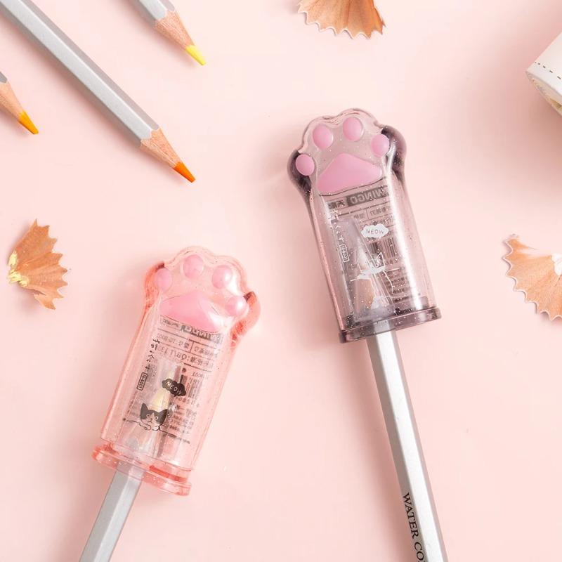 1 шт. Милая точилка для карандашей в виде лапки, мини-прозрачная, мультяшные котята, ручные точилки, канцелярские товары, школьный подарок для детей, награда