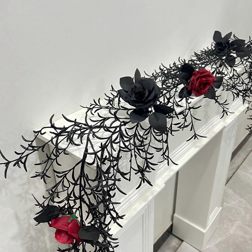 Хэллоуин Гирлянда из мертвых веток, Искусственная роза, Черная декоративная цветочная лоза для подвешивания на дверь, Композиция для праздничной атмосферы, Круг из лозы для подвешивания на стену.