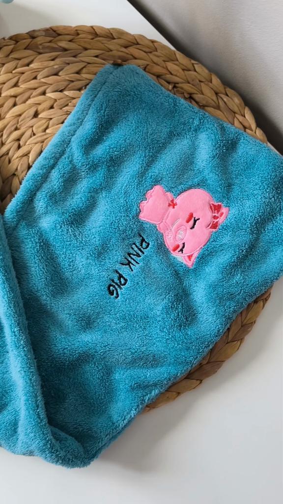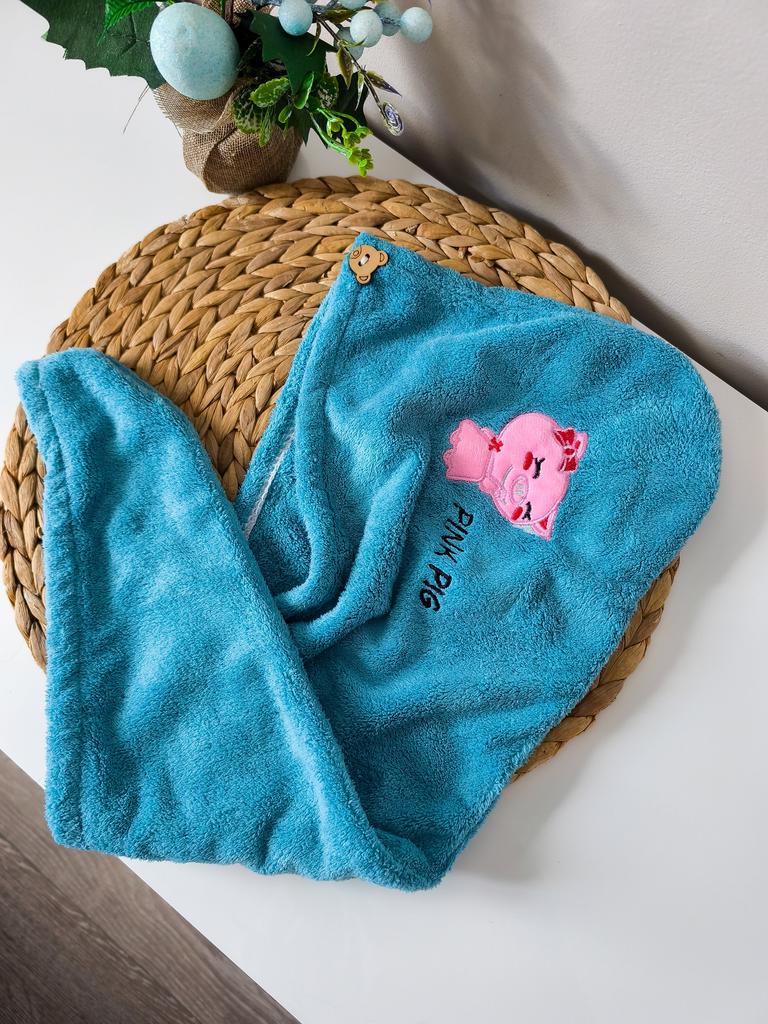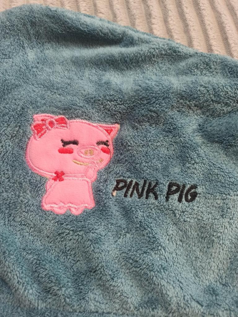 Это практичное и милое полотенце-тюрбан, предназначенное для быстрой и удобной сушки волос после мытья. 🔸Идеально подходит для того, чтобы зафиксировать мокрые волосы, освободив руки от обычного тяжелого полотенца. 🔸Изготовлено из мягкого, пушистого материала, который хорошо впитывает влагу. 🔸Имеет яркий голубой цвет. Главная декоративная деталь — милая вышивка или аппликация розовой свинки и надпись "PINK PIG", что придает изделию игривый и девичий вид. 🔸Форма тюрбана позволяет легко закрутить волосы и закрепить полотенце на голове, обеспечивая комфортную и бережную сушку без необходимости тереть волосы. 🔸Это функциональный и забавный аксессуар для ванной комнаты, который упрощает уход за волосами и станет приятным дополнением к домашнему спа-ритуалу. Рекомендую 👍 Ставлю ⭐ ⭐ ⭐ ⭐ ⭐ Спасибо продавцу ❤️ и Joom ❤️