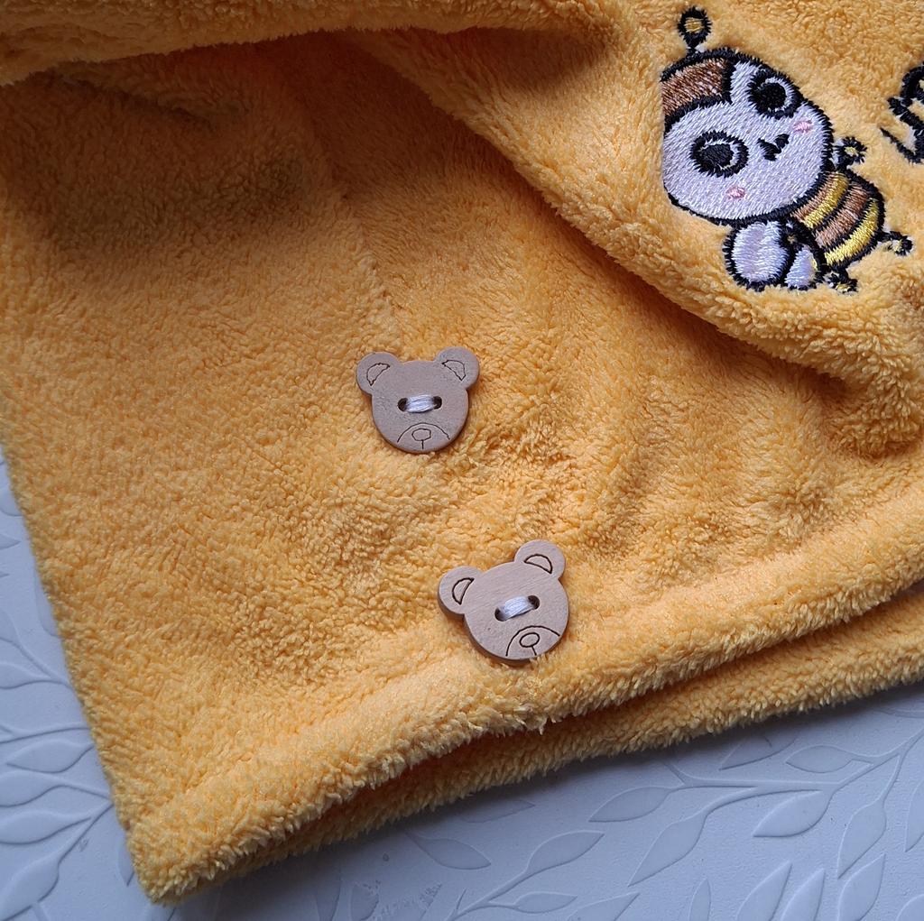 Тюрбан из микрофибры. Выполнен из мягкой и приятной на ощупь микрофибры, отлично впитывает влагу, что делает его очень удобным для сушки волос после душа. Размер 25 на 65 см идеально подходит для большинства длин волос, не слишком громоздкий, но при этом достаточно вместительный. Особенно радуют детали: две симпатичные пуговицы в виде мишек не только придают тюрбану оригинальный и милый вид, но и обеспечивают надежную фиксацию. Петелька из резинки отлично удерживает тюрбан на голове, не соскальзывает. Красочная вышивка пчёлки добавляет изделию стиль и индивидуальность, она аккуратно выполнена и не портится после стирок. В целом, тюрбан сочетает в себе практичность, комфорт и красивый дизайн. Рекомендую тем, кто ценит качество и привлекательный внешний вид. ⭐ Продавец упаковал товар в почтовый конверт. ⭐ Трек номер отслеживался до почтового отделения. ⭐ В приложении пришло уведомление о готовности к выдаче заказа. ⭐ Доставка в Петербург заняла 23 дня.