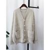 Вязаный кардиган из искусственного норкового бархата, женский, свободный, с V-образным вырезом, универсальный, однотонный, осенне-зимний, новый, куртка-свитер, толстый — купить товар онлайн с бесплатной доставкой по всему миру!