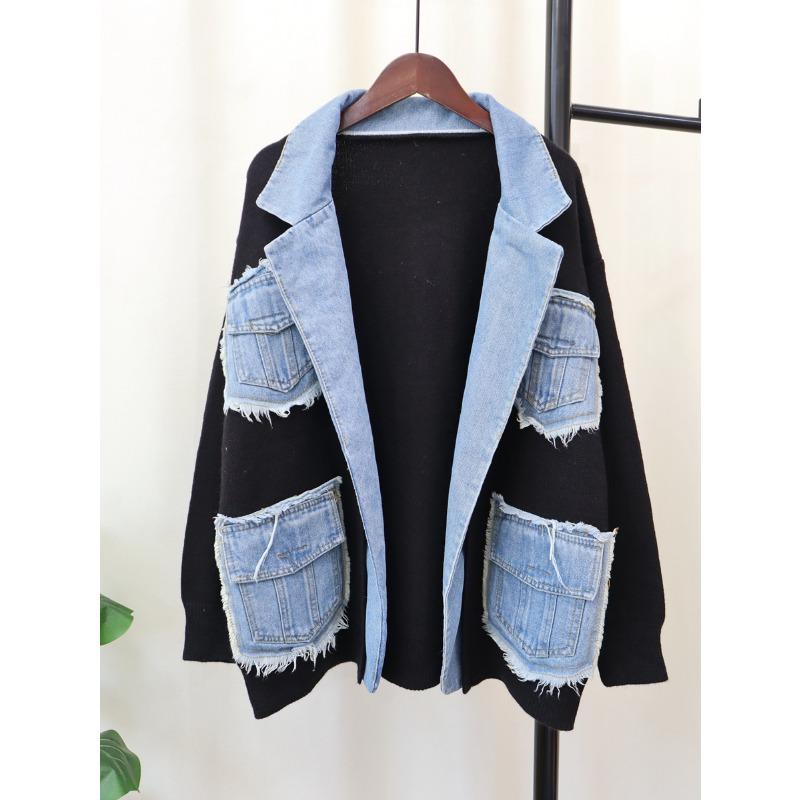 Осень и зима новый джинсовый свитер-жакет в стиле пэчворк женский с чувством дизайна свободный повседневный универсальный вязаный кардиган
