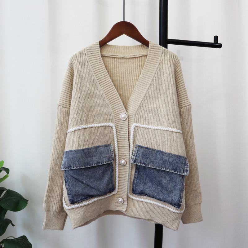 Осень и зима новый джинсовый кардиган с карманами, вязаный, свободного кроя, с темпераментом, универсальный свитер-куртка женский — купить товар онлайн с бесплатной доставкой по всему миру!