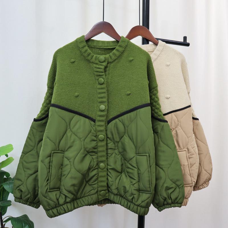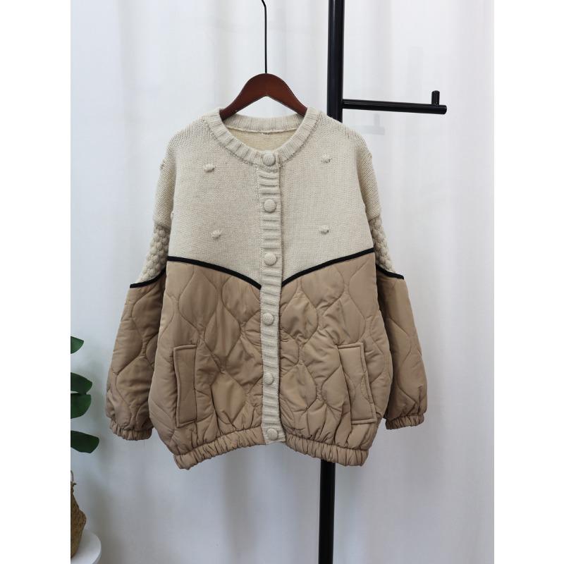 Хлопковый кардиган с вязаным передом, осенне-зимний, новый дизайн, свободный, в ленивом стиле, свитер-куртка женский