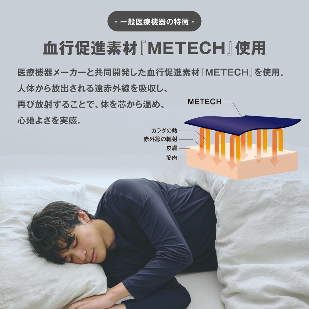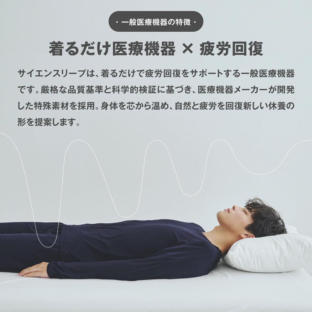 Научный скачок Носимое медицинское устройство x Пижама для восстановления от усталости Длинный размер S [SCiENSLEEP] Комплект, Рукав, Унисекс, Темно-синий,
