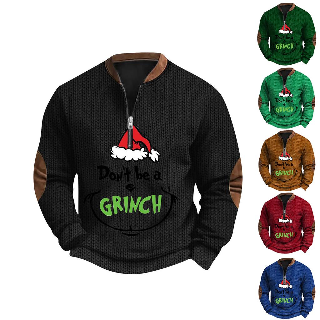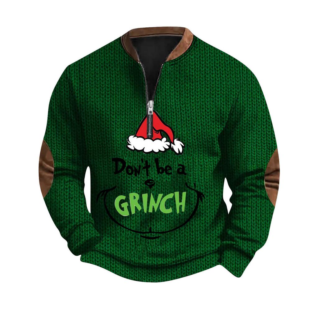Мужской рождественский свитер на молнии, винтажный вязаный графический свитшот, рождественский пуловер со стойкой