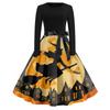 Женское повседневное модное платье винтажного стиля с круглым вырезом и принтом на Хэллоуин