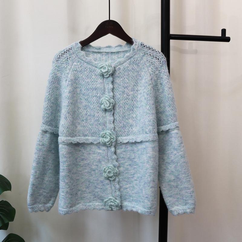 Молочный нежный ветер вязаный кардиган осень и зима новый свободный мягкий восковой цветок сладкий свитер куртка женская