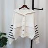 Осень и зима новый свитер с капюшоном куртка свободный полосатый дизайн вязаный двусторонний кардиган женский