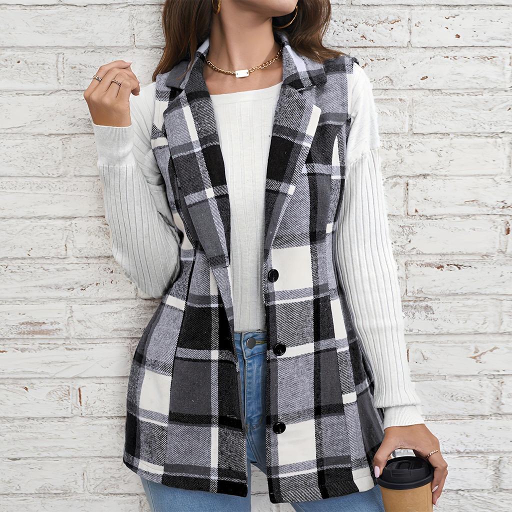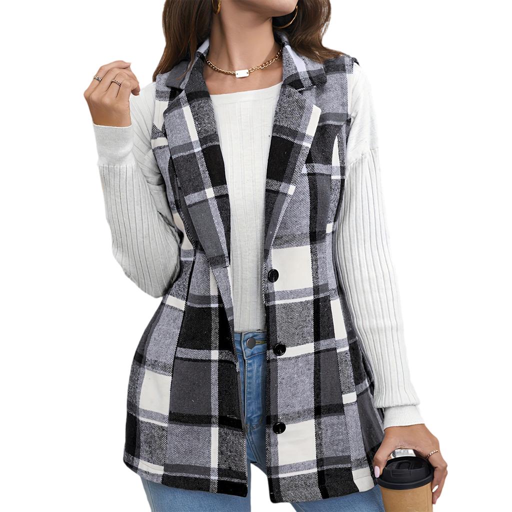 Женская клетчатая модная женская одежда с лацканами, жилет-костюм, клетчатый топ, куртка