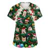 Женский топ защитного костюма с V-образным вырезом, рождественским принтом, короткими рукавами, карманом и боковым разрезом
