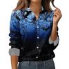 Женская рубашка-блузка с принтом и пуговицами, длинный рукав, повседневный базовый рубашечный воротник, обычный топ
