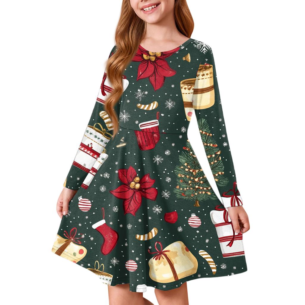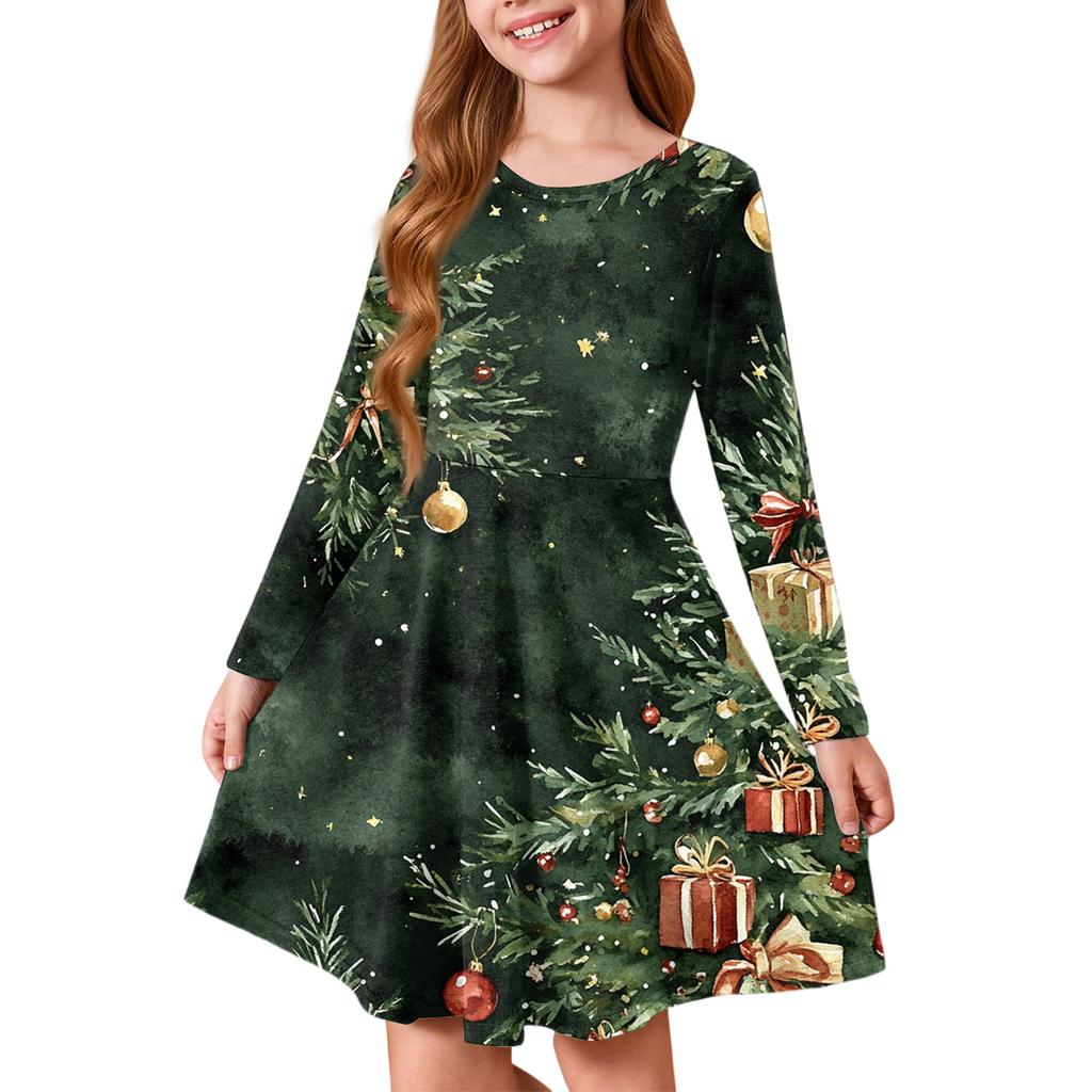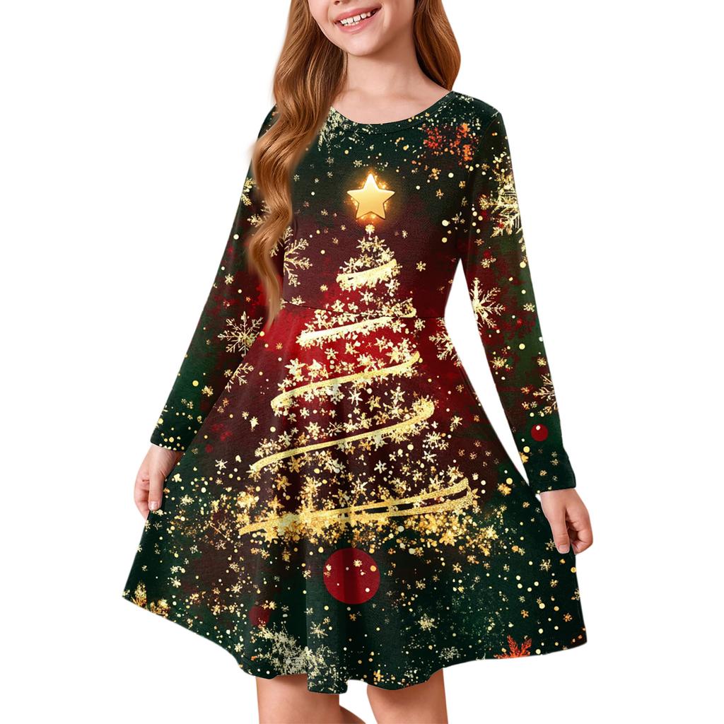 Платье принцессы для девочек - Платье-футболка А-силуэта с длинным рукавом на Рождество